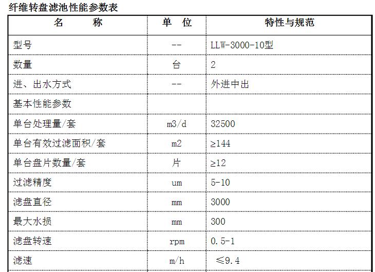 纖維轉盤濾布濾池過濾器裝置一般技術要求: